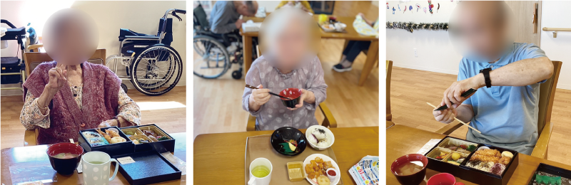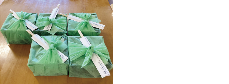 緑の風呂敷に包まれた二段のお弁当を見てご利用者様の気分も上がります🎶