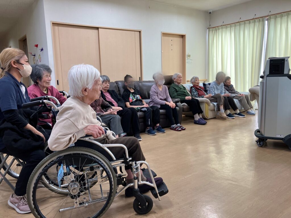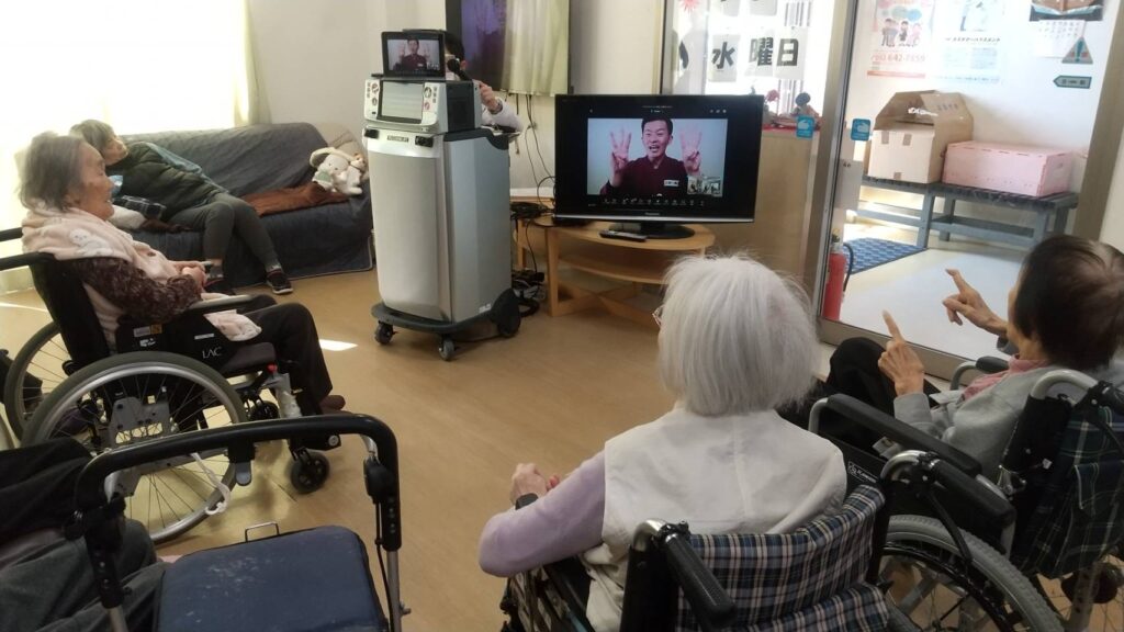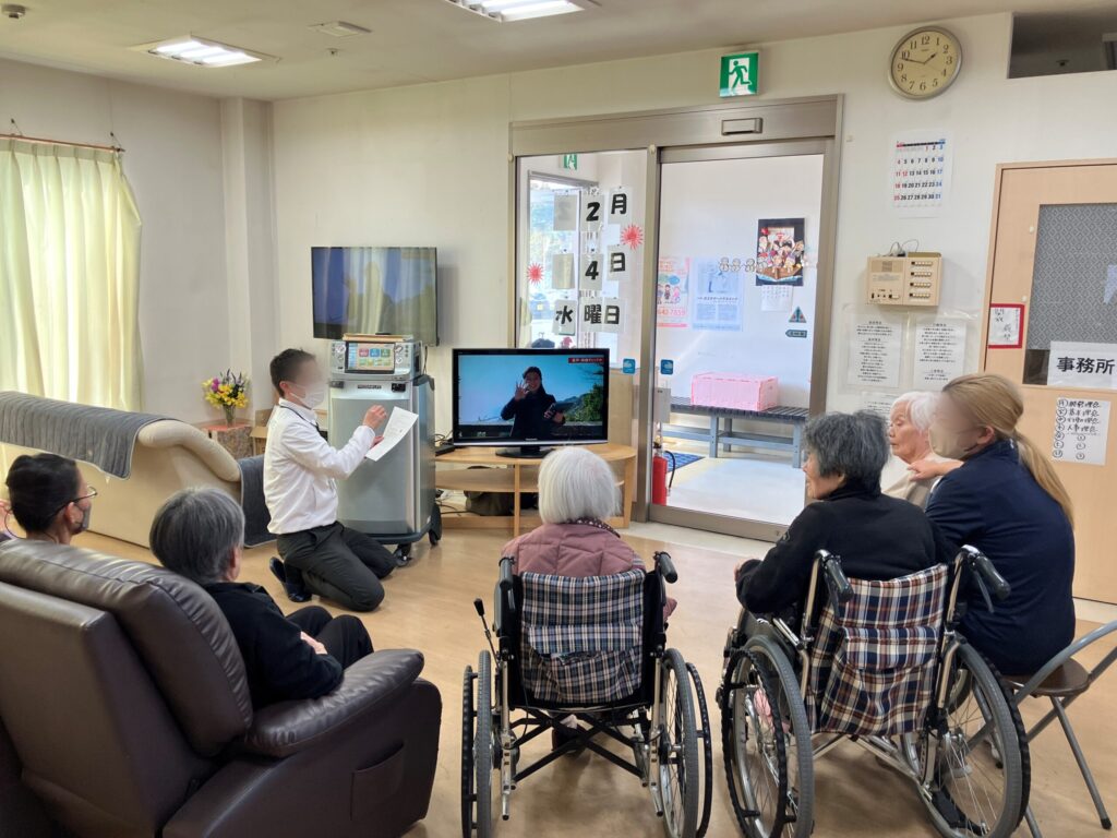 全国の介護施設をオンラインで繋ぎながら、生中継で旅行や体操が楽しめるといったものなんです