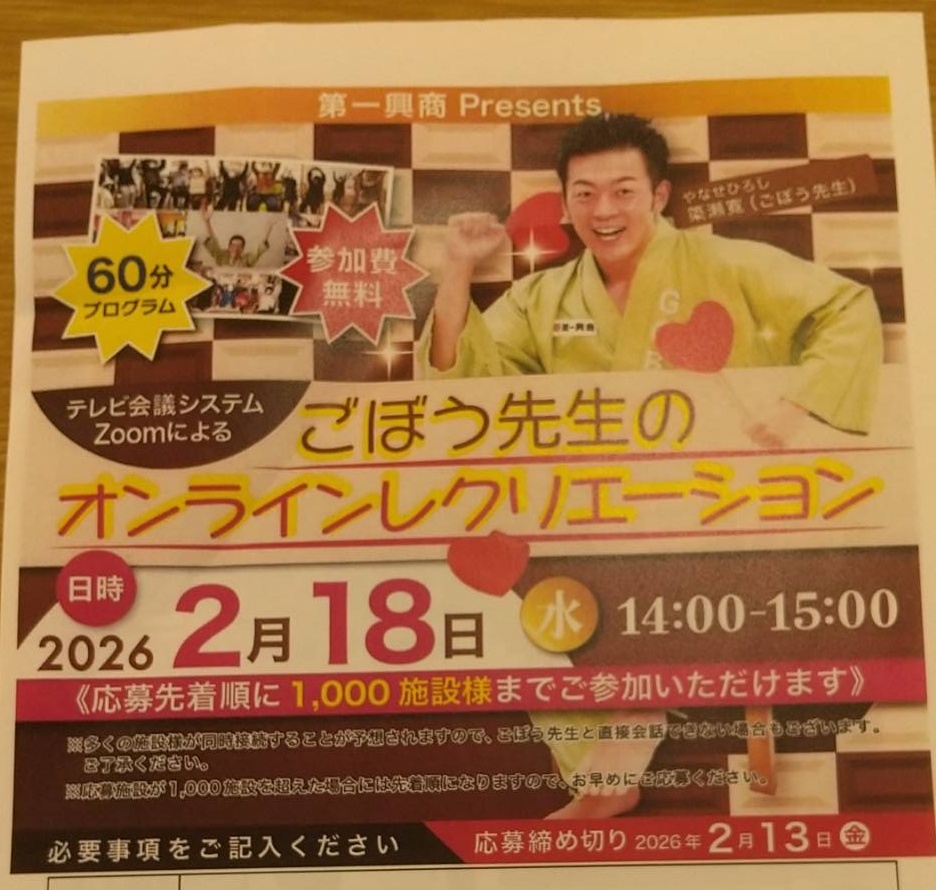 オンラインによる「国宝ツアー」と「ごぼう先生によるレクリエーション」です☆