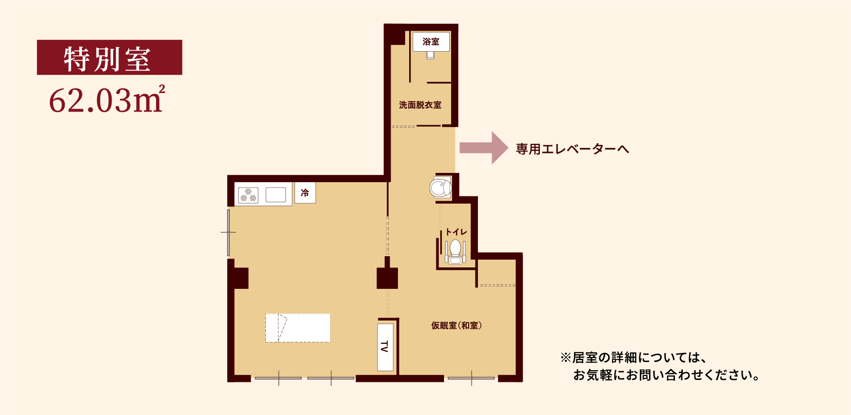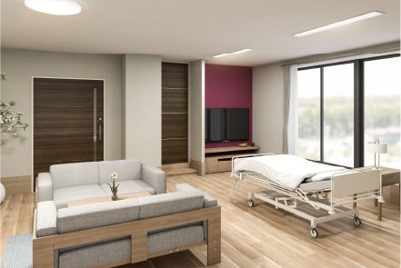 人生の最後の一瞬まで自分らしく暮らせるように、看取り介護専用の特別室をご用意しています。直通のエレベーターを完備していますので、ご家族、ご親戚、お友達など、自分たちだけの空間としてお使いいただけます。
