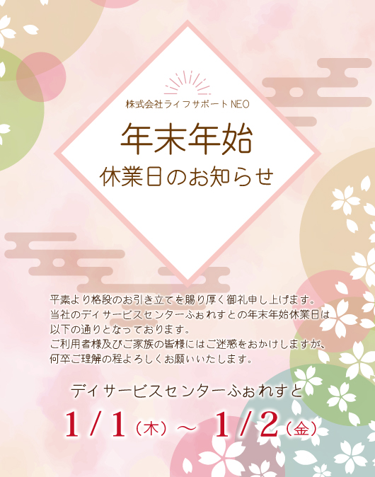 年末年始の休業日のお知らせ