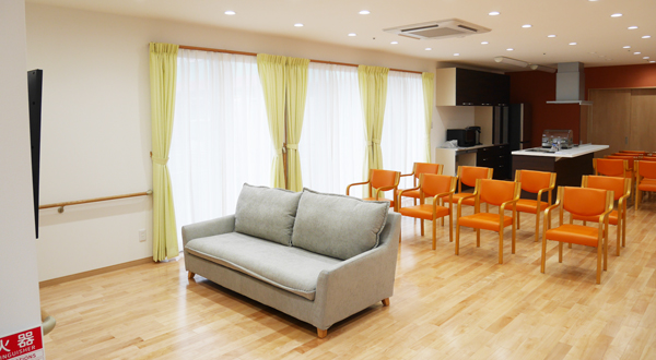 ■明るく広々としたリビング・ホール。こちらで食事はもちろん、各種イベント・レクリエーションなども行います。