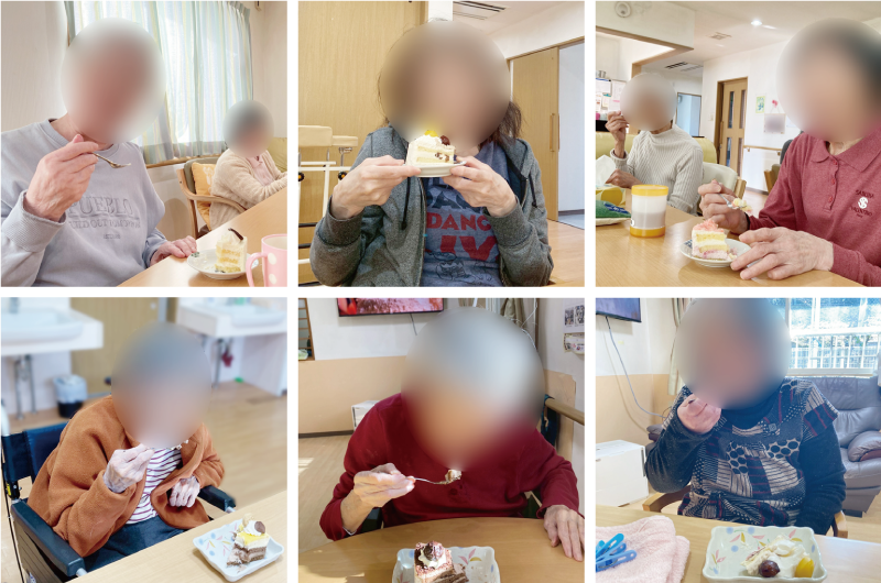 ケーキをみて「わぁ~きれいね。美味しそうね。」とご利用者様。