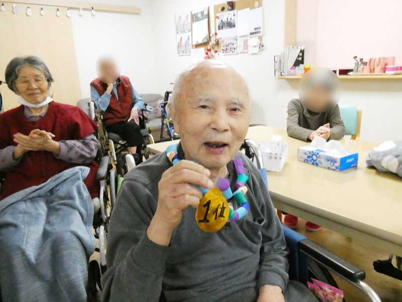 表彰式も行い、合計点が1番多かったご利用者H様にはスタッフお手製のメダルをお渡し🥇