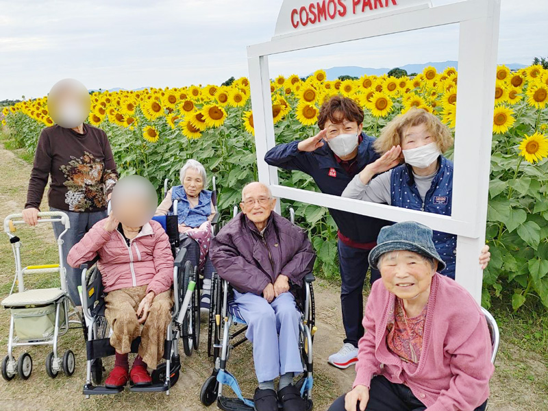ひまわりとコスモスが同時に咲いており、「夏か秋か分からんね~(笑)」などと会話を楽しまれます😊