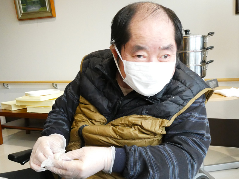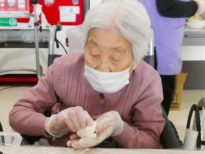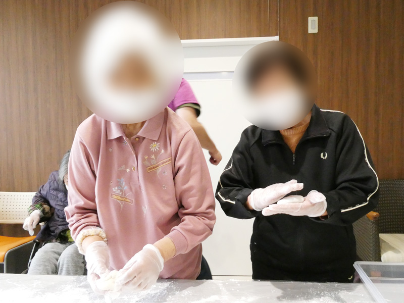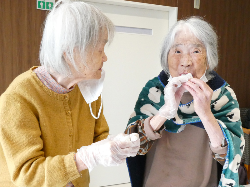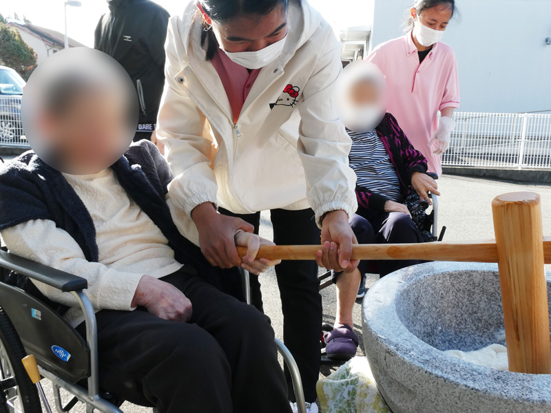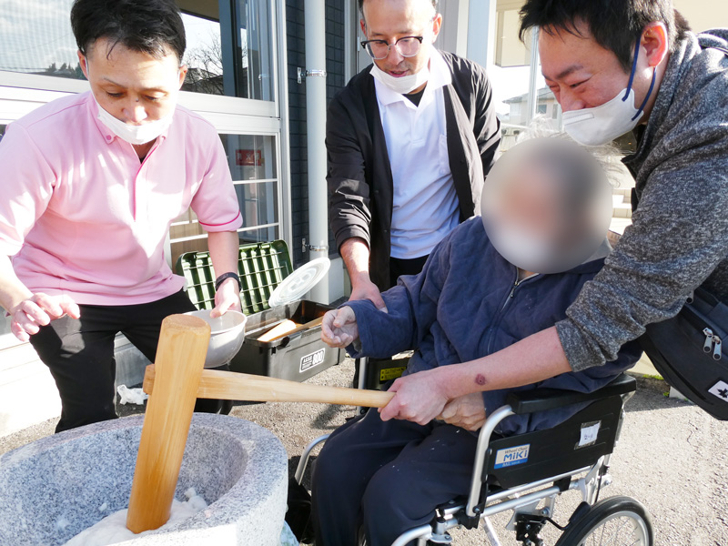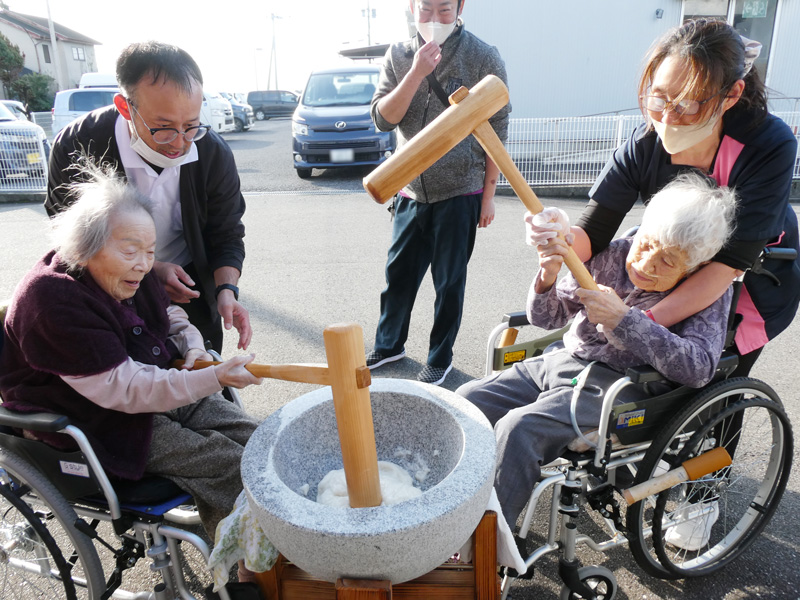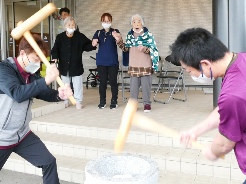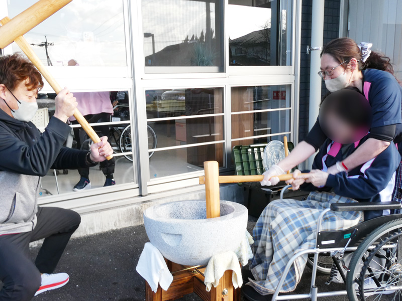 スタッフの息の合った高速餅つきには「おぉ!早かね~」とご利用者様も驚きの表情😲