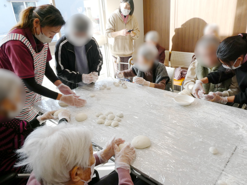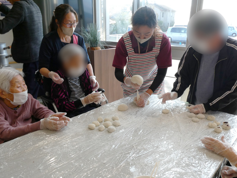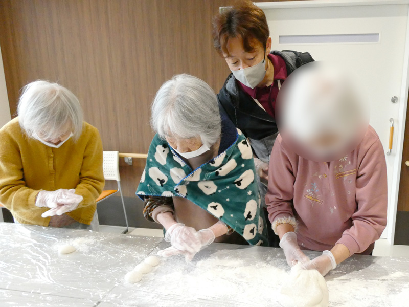 餅つきの後は、皆様にお餅を丸めていただきました!