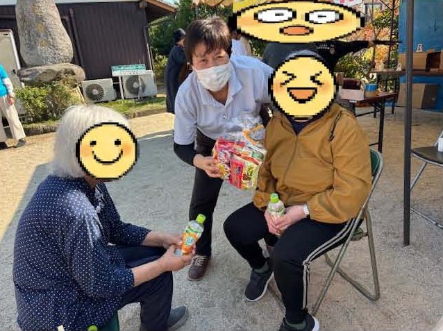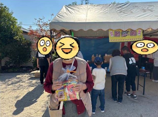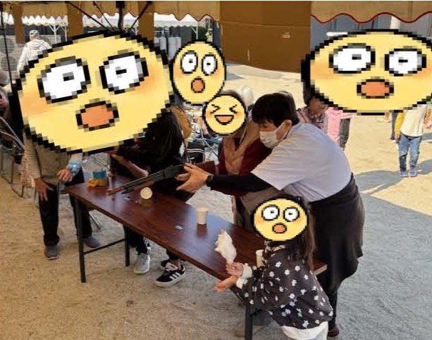 他の利用者様も射的をされましたが、惜しくも的を外れてガックリと肩をうなだれていると、近くにいた少年が「これどうぞー」とお菓子の詰め合わせを分けてくれました( ノД`)シクシク…