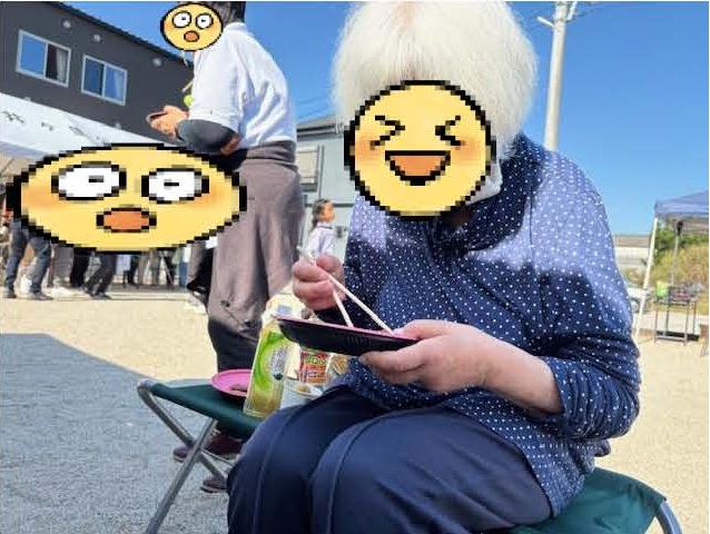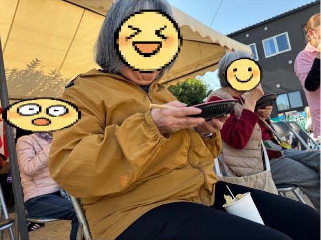 芋の天ぷらや焼き肉、かしわのおにぎりとお茶やジュースまでいただいて、鯛や平目の舞い踊りさながら、たくさんほとめいていただきました(●´ω`●)