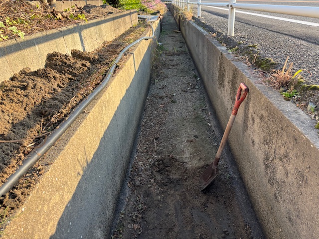 水路には土や砂が底に溜まっており、水害対策の一環で清掃をしましたー(੭ु´・ω・`)੭ु⁾⁾💖💖