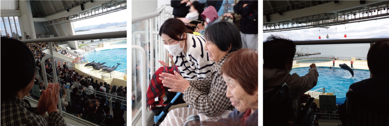 イルカのジャンプや水しぶきをあげる様子にもくぎ付けで、夢中になってショーを楽しまれ、カメラに収められるご利用者様もいらっしゃいました📸